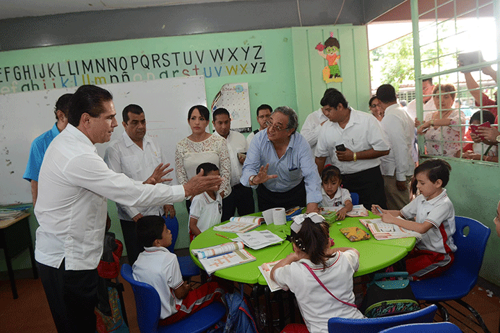 NOTICIAS 10/12/2015Garantiza Silvano Aureoles espacios dignos para educación de niñez en MichoacánCon escuelas dignas y maestros preparados se logrará abatir el rezago educativo en Michoacán, aseguró el Gobernador del Estado, Silvano Aureoles Conejo al poner en marcha el Programa Escuelas al CIEN (Certificados de Infraestructura Educativa Nacional), en la Escuela Primaria Felipe Carrillo Puerto en las región de Tierra Caliente.