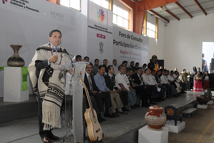 NOTICIAS 11/12/2015Ya no vamos postergar el desarrollo de Michoacán: Silvano AureolesSe construirá un Plan de Desarrollo Integral del Estado de Michoacán 2015-2021, sólido, realista y realizable que nos permita sacar a las michoacanas y a los michoacanos adelante, porque el desarrollo de la entidad ya no se puede postergar, afirmó el Gobernador del Estado, Silvano Aureoles Conejo, en el marco del sexto Foro de Consulta Ciudadana que se realizó en la región Purépecha.