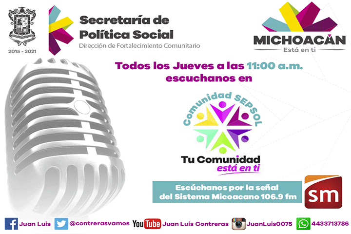 NOTICIAS 09/12/2015"Comunidad SEPSOL" por la radio del SMRTVCon la finalidad de crear un espacio radiofónico para escuchar a los diferentes sectores del estado, la Secretaría de Política Social (Sepsol) y el Sistema Michoacano de Radio y Televisión (SMRTV) signaron un convenio para transmitir un programa semanal denominado "Comunidad Sepsol", el cual inicia operaciones a partir de mañana jueves por la señal 106.9 FM.
