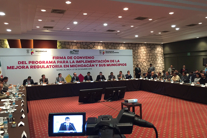 NOTICIAS 07/12/2015SE firma el convenio del programa para la implementación de la mejora regulatoria en Michoacán y sus municipiosAnte autoridades municipales, estatales y federales y en presencia del Gobernador del Estado, Silvano Aureoles, el Presidente Municipal Alfonso Martínez Alcázar señaló que una de las responsabilidades como autoridades, de cualquier nivel, es incentivar el desarrollo económico y ser facilitadores, para que la ciudadanía tenga las herramientas necesarias para contar con un patrimonio.