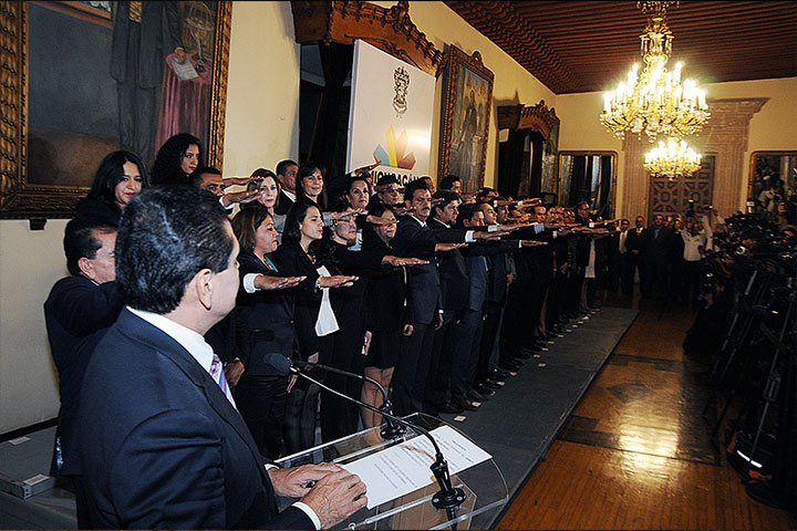 NOTICIAS 01/10/2015Silvano toma protesta a Gabinete Legal y AmpliadoEl gobernador del Estado, Silvano Aureoles Conejo les tomó protesta a los integrantes del Gabinete Legal y Ampliado, esto como parte de la encomienda de las distintas áreas de la admnistración pública.