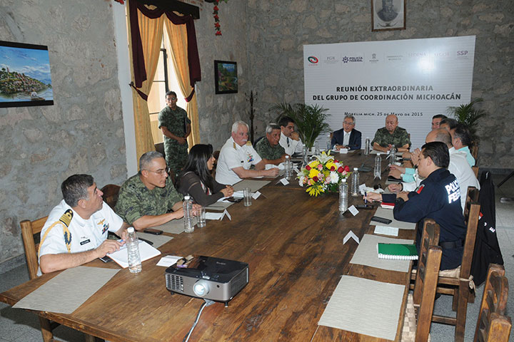 Las autoridades que forman parte del Grupo de Coordinación Michoacán, encabezadas por el gobernador del estado, Salvador Jara Guerrero y el general Felipe Gurrola Ramírez, mando especial para la seguridad en la entidad, sesionaron de manera extraordinaria en las instalaciones de la XXI Zona Militar para hacer una evaluación de los hechos ocurridos en el municipio de Ecuandureo, el pasado 22 de mayo.