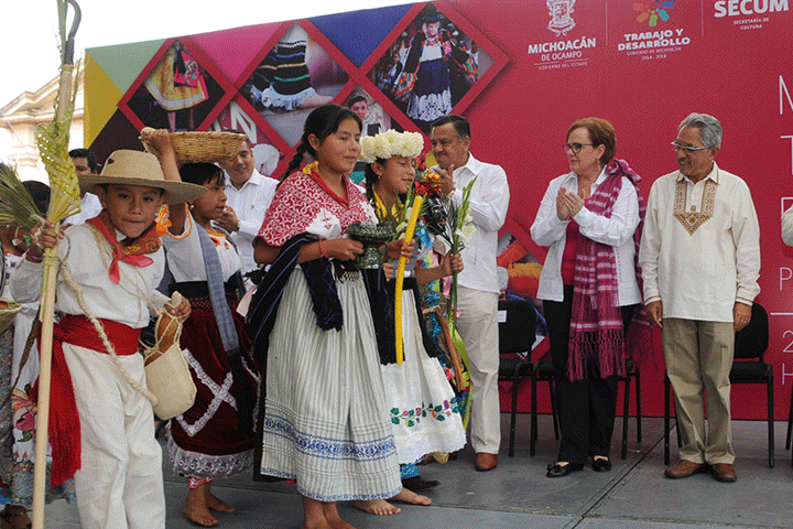 NOTICIAS 29/03/2015Entregan reconocimientosComo parte de su gira de trabajo por Uruapan, el gobernador Salvador Jara Guerrero entregó reconocimientos a representantes de las cuatro etnias existentes en la entidad: Mazahua, Náhuatl, Otomí y Purépecha, que participaron en la Muestra de Indumentaria Tradicional de Ceremonias y Danzas de Michoacán 2015, evento organizado por la Secretaría de Cultura del estado en La Huatapera de Uruapan, con motivo del Domingo de Ramos.