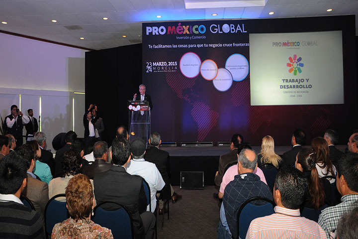 Con la expectativa de colocar 10 millones de dólares en exportaciones al corto y mediano plazo, este lunes el gobernador Salvador Jara Guerrero y el subsecretario de Alimentación y Competitividad de la Sagarpa, Ricardo Aguilar Castillo, inauguraron el foro de negocios ProMéxico Global Michoacán: Rueda Agroalimentaria, que reunirá durante dos días a 126 productores mexicanos ?el 80% michoacanos- con 14 importadores de diversos países par... Ver más...