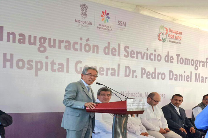Con una inversión de casi 15 millones de pesos, en su mayoría recursos federales del Plan Michoacán, el gobernador Salvador Jara Guerrero y el secretario de Salud estatal, Carlos Aranza Doniz entregaron las obras de remodelación y mejoramiento de 10 Centros de Salud de la región Uruapan, así como un tomógrafo instalado en el Hospital General "Dr. Pedro Daniel Martínez", en esta ciudad.