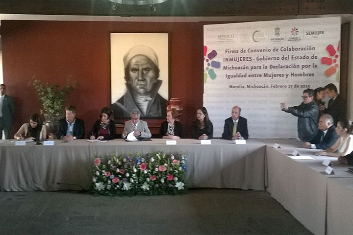 NOTICIAS 27/02/2015Firman convenio para la Declaración por la Igualdad entre Mujeres y HombresFirmó convenio de Colaboración INMUJERES - Gobierno del Estado de Michoacán para la Declaración por la Igualdad entre Mujeres y Hombres para la creación de protocolos que prevengan cualquier tipo de violencia contra las mujeres y las niñas, indicó la secretaría de la Mujer en la entidad, Marisol Aguilar Aguilar.