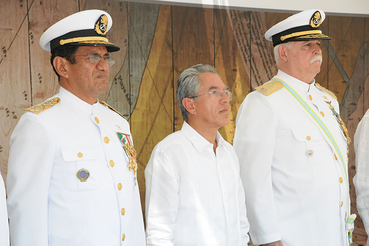 El mandatario estatal felicitó al vicealmirante Alfredo Morales Mendoza, quién rindió protesta como nuevo comandante de la Décima Zona Naval, y le ratificó la disposición de su gobierno a colaborar con las fuerzas armadas para preservar la paz en e... Ver más...