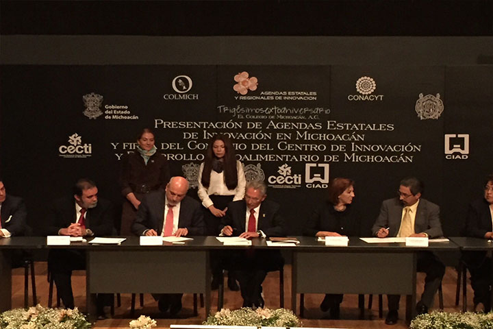 NOTICIAS 15/01/2015Inauguran Biblioteca y anexo de El Colegio de MichoacánEn el marco del trigésimo sexto aniversario de El Colegio de Michoacán, el gobernador Salvador Jara Guerrero recibió de manos del director general del Consejo Nacional de Ciencia y Tecnología (Conacyt), Enrique Cabrero Mendoza, la Agenda Estatal de Innovación, con lo que Michoacán se convierte en la primera entidad del país en contar con este análisis sobre las potencialidades y vocaciones a desarrollar en los próximos años para lograr ... Ver más...