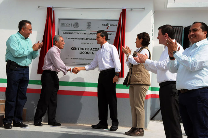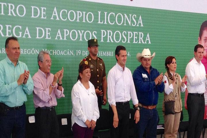 El presidente de México Enrique Peña Nieto y el gobernador de Michoacán Salvador Jara Guerrero inauguraron el Centro de Acopio Liconsa en Álvaro Obregón, que captará hasta 20 mil litros de leche fresca diariamente en beneficio de al menos 300 ganaderos del valle Morelia-Queréndaro.