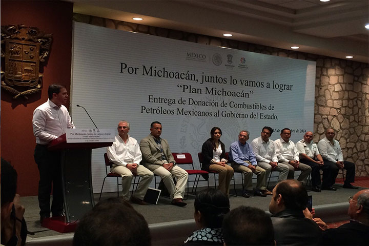 Como parte del Plan Michoacán emprendido por parte de la federación en la entidad, Petróleos Mexicanos (PEMEX), donó a Gobierno del estado, 700 mil litros de gasolina, 400 mil litros de diésel para el uso de las unidades de seguridad pública que opera en el estado.