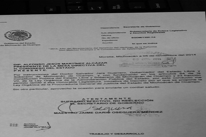 NOTICIAS 05/11/2014Presenta Ejecutivo iniciativa de Ley Orgánica de la PGJE