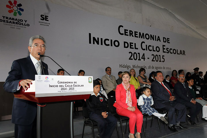 Con el deseo de que se cumplan los 200 dÃas de clase que marca el calendario escolar, el gobernador Salvador Jara Guerrero, inauguró en esta comunidad el ciclo escolar 2014-2015, donde lanzó un llamado a los michoacanos a defender sus derechos pero también cumplir a cabalidad con las obligaciones que cada uno tiene.