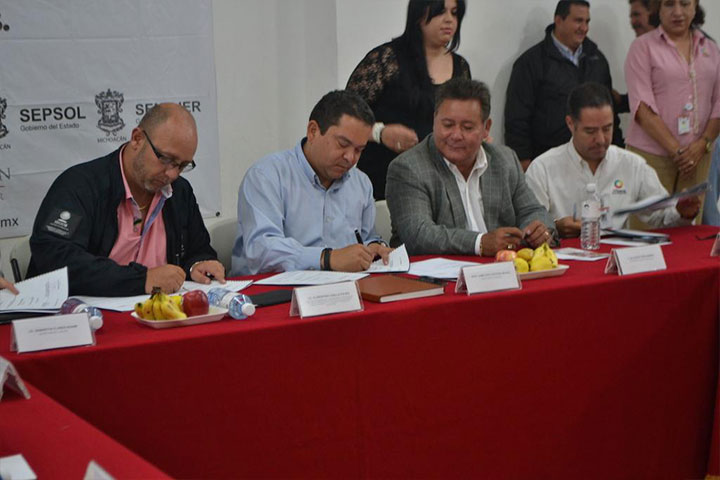 Ante los presidentes municipales de Nuevo Urecho, Modesto Torres RamÃrez; Ario de Rosales, Irma Moreno MartÃnez; Arteaga, José GarcÃa Cuevas; La Huacana, Alfonso Méndez Chávez y el encargado del despacho de LÃ... Ver más...