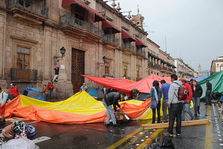 NOTICIAS 09/08/2014Jara y normalistas acuerdan acciones conjuntasTras acordar acciones conjuntas con el Gobierno del Estado para que, en el marco de la legalidad sean atendidas sus peticiones ante las instancias federales correspondientes, la tarde de este viernes estudiantes de las escuelas normales del estado e integrantes de la Sección XVIII de la Coordinadora Nacional de Trabajadores de la Educación, retiraron el plantón que mantenían frente a Palacio de Gobierno en esta ciudad capital.