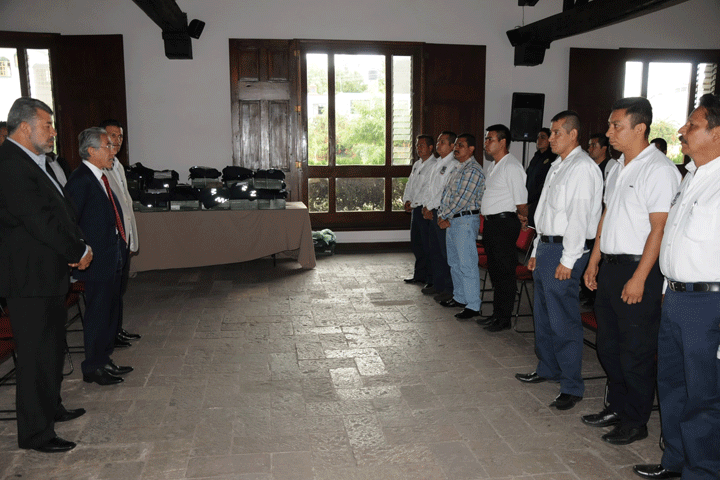 NOTICIAS 25/07/2014Entregan uniformes al cuerpo de ayudantía.El gobernador Salvador Jara Guerrero, dotó de uniformes y equipamiento nuevo a los integrantes del cuerpo de Ayudantía de Casa de Gobierno, quienes son los responsables de garantizar la seguridad del mandatario estatal y procurar el orden al interior del inmueble.
