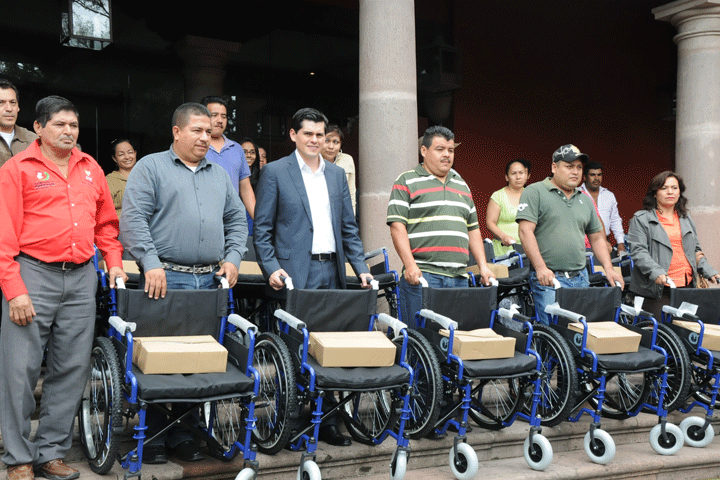 NOTICIAS 01/07/2014Continúan apoyos a personas con discapacidadEscuchar a los ciudadanos para que cada vez sean más los que tengan acceso a mejores oportunidades, es una de las líneas de trabajo del Gobierno del Estado, señaló el coordinador de Atención Ciudadana, Juan Antonio Ixtláhuac Orihuela, durante la entrega de 30 sillas de ruedas a igual número de personas de diferentes municipios que sufren alguna discapacidad o padecimiento.