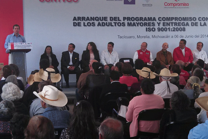 En este gobierno trabajamos con visión humanista porque centramos todos los esfuerzos en la persona, afirmó el gobernador Fausto Vallejo Figueroa, al encabezar el arranque de entrega de despensas del Programa Compromiso con la Nutrición de los Adultos Mayores 2014, y al recibir la Certificación de Calidad ISO 9001:2008 de este programa, donde señaló que el padrón de beneficiarios del mismo se integra con transparencia y garantizando las ... Ver más...