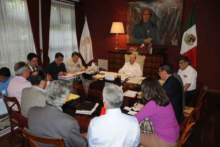 El gobernador del Estado Fausto Vallejo Figueroa, sostuvo una reunión de trabajo con parte de su gabinete y representantes de delegaciones federales, para revisar el avance físico y financiero de los cinco compromisos del presidente Enrique Peña Nieto, en materia de infraestructura de salud para con Michoacán, que son la construcción de los hospitales Civil e Infantil de Morelia, el área de Nefrología en el hospital de Ciudad Hidalgo, ... Ver más...