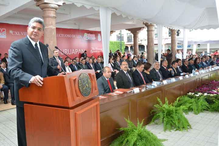 Sólo en la unidad los michoacanos podremos abatir los flagelos que atentan contra el Estado, apuntó ante los titulares de los poderes Legislativo y Judicial, así como autoridades del Ayuntamiento de Apatzingán, el gobernador Jesús Reyna García.