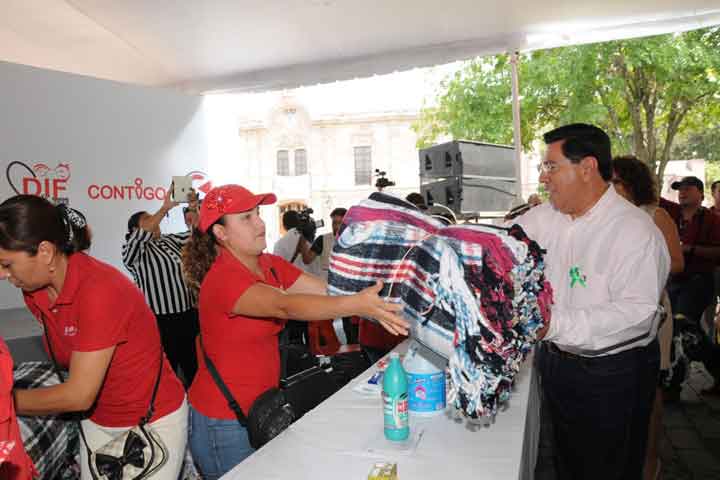 Michoacán está de pie y recuperándose, aseguró Jesús Reyna García, gobernador del estado, quien acompañado de su esposa e hijas, hizo entrega de diversos apoyos en especie, como cobijas y enseres domésticos, al Centro de Acopio ubicado en la Plaza Jardín Morelos, en beneficio de la población afectada por las contingencias ambientales.