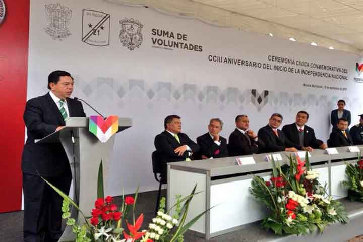 Ni complicidad ni tolerancia con la delincuencia, se pronunció el gobernador interino de Michoacán, Jesús Reyna García durante la Ceremonia Cívica Conmemorativa del 203 Aniversario del Inicio de la Independencia Nacional, en donde hizo anunció del refuerzo y trasformación de las instituciones encargadas de combatir la inseguridad para recuperar el aprecio social a ellas.