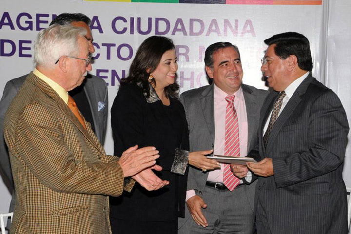 El gobernador del estado, Jesús Reyna García recibió de manos de Luisa Estela León Marín, presidenta de la Confederación Patronal de la República Mexicana delegación Michoacán (Coparmex), las conclusiones del Foro Regional "Agenda Ciudadana Pacto por México en Michoacán".