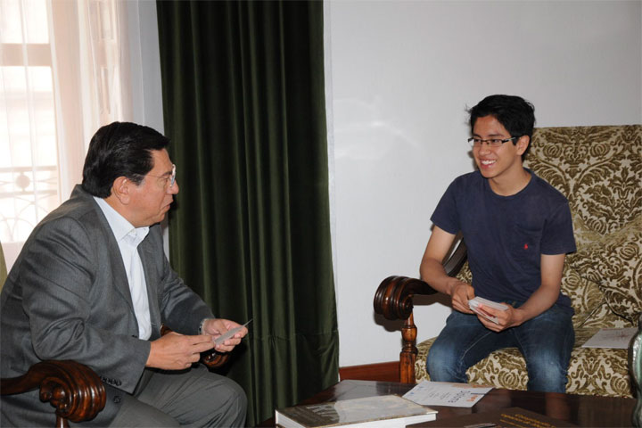 NOTICIAS 25/06/2013Felicita Reyna al joven michoacano campeón mundial de Infomatrix 2013