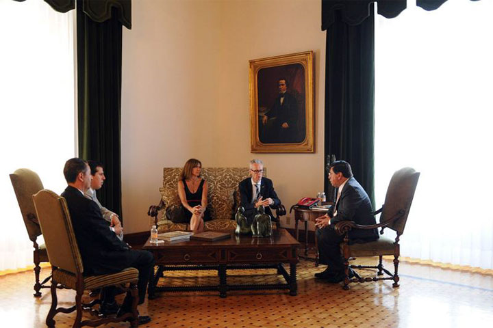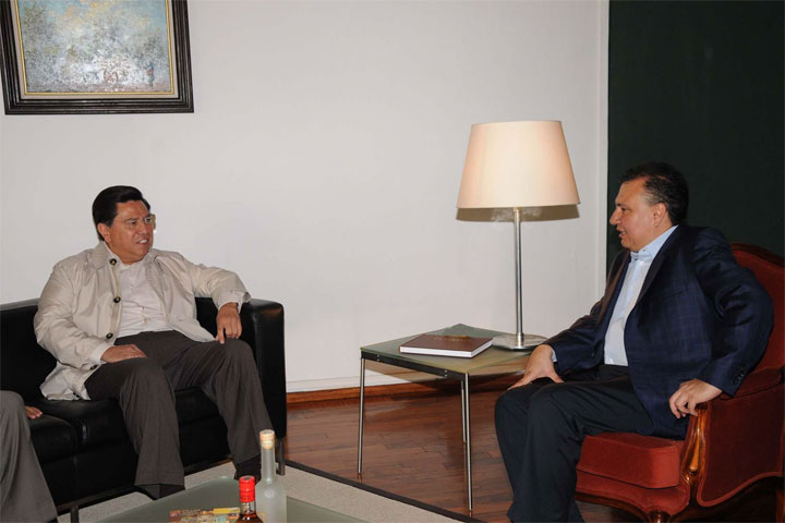 El gobernador del estado Jesús Reyna García, recibió en su despacho al embajador de Venezuela en México, Hugo García Hernández, con quien estableció este primer contacto para en un futuro próximo, concretar intercambios culturales, económicos y turísticos.
