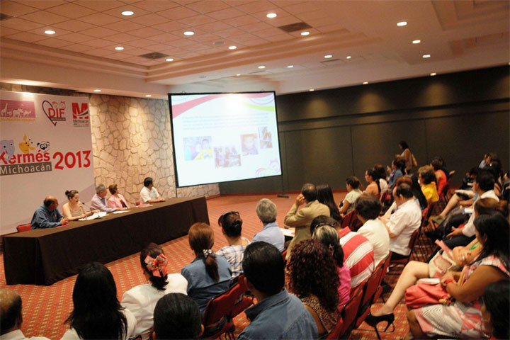 La directora del Sistema para el Desarrollo Integral de la Familia (DIF) Michoacán, Nelly Sastré Gasca, encabezó la reunión con las diversas dependencias del gobierno federal, estatal y municipal, así como asociaciones y agrupaciones privadas, sobre los preparativos de la tradicional Kermés 2013, cuyos recursos serán destinados este año para el fortalecimiento de los programas sociales de la dependencia.