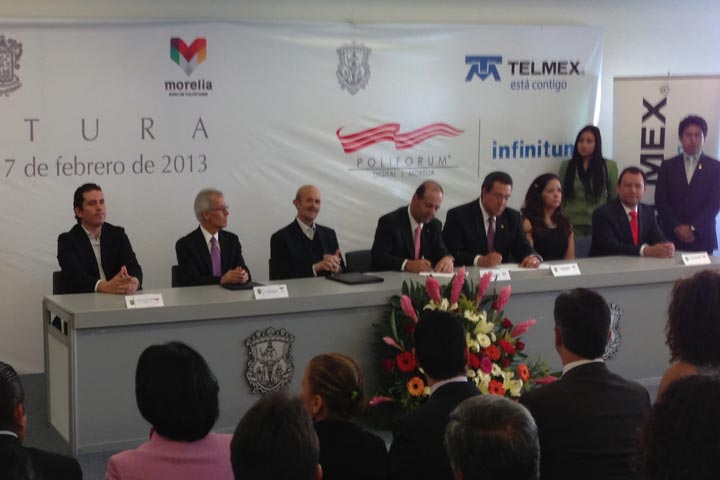 Con la presencia del gobernador del estado, Fausto Vallejo Figueroa; el director de Telmex, Héctor Slim y el presidente municipal de Morelia, Wilfrido Lázaro Medina, se inauguro el Poliforum Digital Morelia Infinitum.