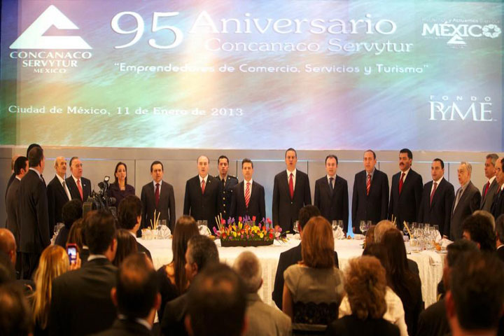 El gobernador del estado, Fausto Vallejo Figueroa, acompañó al presidente de la República, Enrique Peña Nieto, al 95 aniversario de la Confederación de Cámaras Nacionales de Comercio, Servicios y Turismo (CONCANACO-SERVYTUR).