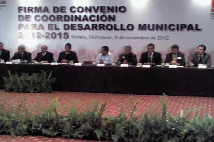 Con un total de 472 obras, bajo el programa de obra convenida, el gobernador del estado, Fausto Vallejo Figueroa, signó el convenio de colaboración para el desarrollo municipal 2012-2015.