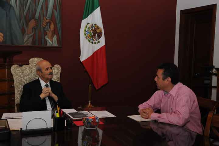 Este Jueves Municipalista, el gobernador del estado Fausto Vallejo Figueroa, recibió al presidente municipal de Jiquilpan, José Francisco Álvarez Cortés, quien se congratuló por la intervención del mandatario estatal para firmar un convenio que permita de manera conjunta hacer posible la remodelación de la plaza principal de la cabecera municipal.
