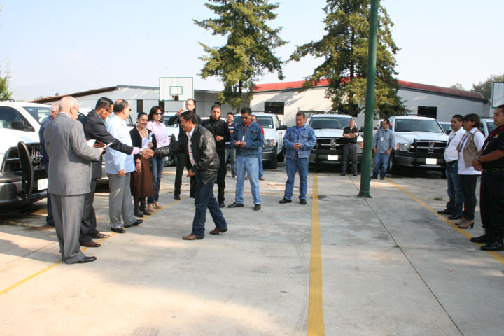 NOTICIAS 19/10/2012Entrega PGJE 45 nuevas unidadesCon un recurso por arriba de los 13 millones 500 mil pesos, la Procuraduría General de Justicia de Michoacán (PGJE), encabezada por su titular, Plácido Torres Pineda, entregó este viernes a su personal operativo 45 vehículos de servicio, a fin de fortalecer las tareas y trabajos que la propia institución realiza.