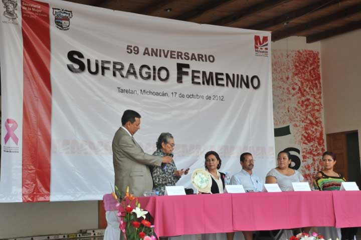 En este marco se rindió homenaje a la ilustre taretense, MarÃa del Refugio GarcÃa MartÃnez, impulsora y activista del voto femenino en el paÃs y se otorgó un reconocimiento a Isabel Coria Rivera, por su labor social y educativa en el municipio.