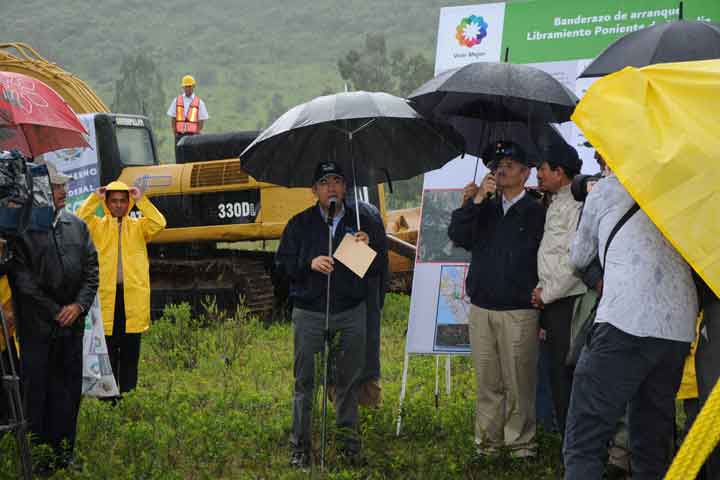El gobernador del estado, Fausto Vallejo Figueroa, el presidente de la República, Felipe Calderón Hinojosa, y Dionisio Pérez Jácome, secretario de Comunicaciones y Transportes, dieron el banderazo de arranque para la construcción del Libramiento Poniente de Morelia, en que la Federación aportará 3 mil 029 millones de pesos en beneficio del desarrollo de Michoacán.