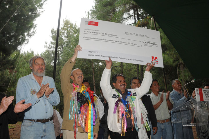 Un monto de 2.2 millones de pesos, entregó el gobernador del estado Fausto Vallejo Figueroa al presidente municipal de Tingambato, José Guadalupe Aguilera Rojas, para el equipamiento del pozo profundo en la comunidad de Pichátaro.
