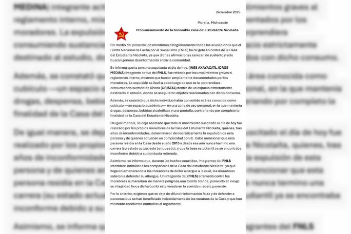 NOTICIAS 01/12/2025Proteger las Casas del Estudiante debe ser una prioridad para las administraciones nicolaitas, señala Yarabí Ávila tras refrendar apoyo "Respetar, proteger y sobre todo seguir construyendo un mejor ambiente en todos los sentidos en las Casas del Estudiante es y debe ser una prioridad para todas las administraciones de la Universidad Michoacana de San Nicolás de Hidalgo (UMSNH)", señaló la rectora Yarabí Ávila González, al asistir al acto con motivo del 57 aniversario de la Casa del Estudiante Nicolaita.