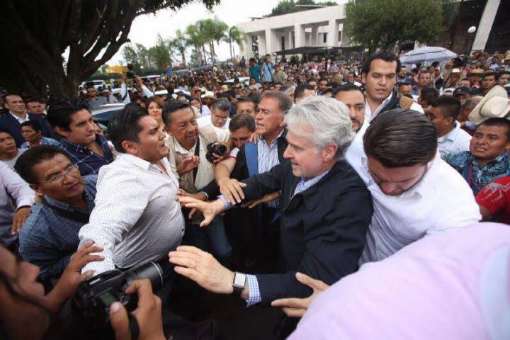 Los manifestantes pretendían impedir la entrada del gobernador electo, que se disponía a ... Ver más...