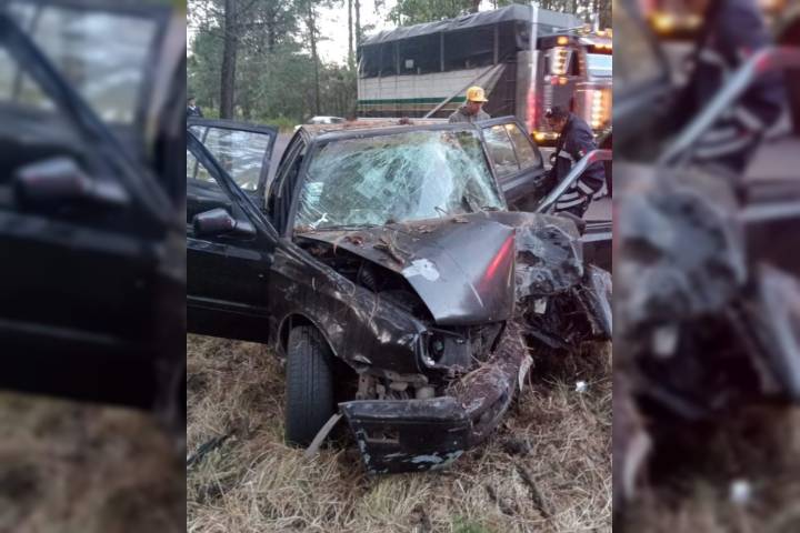 NOTICIAS 02/05/2023Auto termina destruido al chocar contra un árbol; hay tres heridos Tres personas que viajaban a bordo de un auto particular resultaron lesionadas, luego de que su unidad se saliera de la carretera e impactara contra un árbol, en la carretera Uruapan Los Reyes. La unidad motriz terminó destrozada.