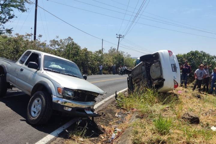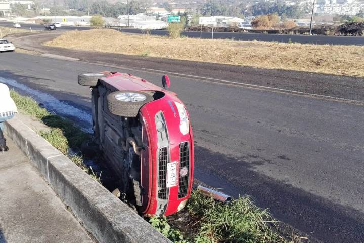 Dos vehículos protagonizaron un choque y uno de ellos quedó volcado a la orilla del camino Morelia-Recinto Ferial, trascendió en la labor noticiosa.