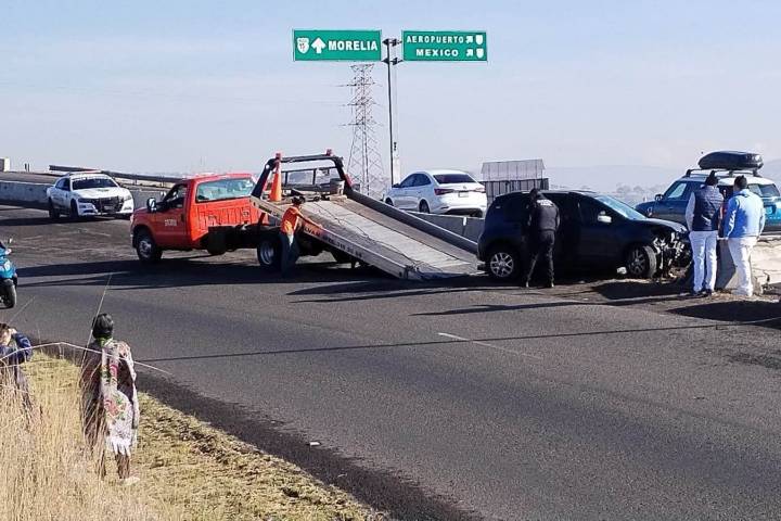 Un vehículo se estrelló contra un muro de contención tras salirse de control al llegar a una curva ubicada en el camino Morelia-Recinto Ferial.