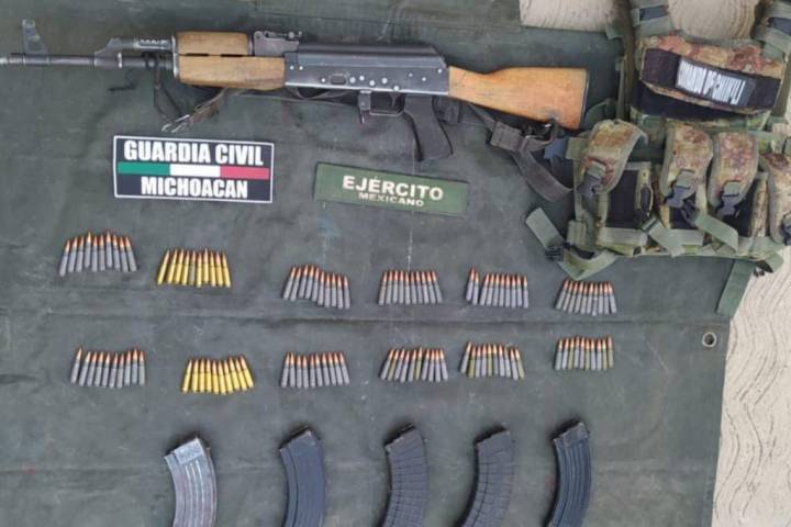 NOTICIAS 12/04/2023En Múgica: SSP, Sedena y GN detienen a 2 personas con arma larga y 120 municiones Derivado de la operatividad interinstitucional desarrollada en la zona de la Tierra Caliente michoacana, los elementos de las Secretarías de Seguridad Pública (SSP) y de la Defensa Nacional (Sedena), junto con la Guardia Nacional (GN); detuvieron a dos hombres en posesión de un arma larga y 120 municiones, en el municipio de Múgica.