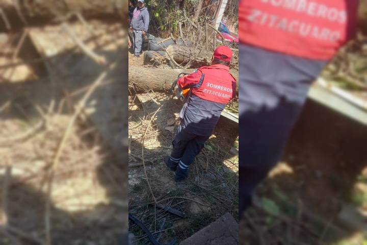 Datos obtenidos por este medio señalan que se reportó a Bomberos de Zitácuaro que en la cuarta manzana de la Palma de Cedano, en el camino a la UPN había caído un árbol sobre una casa habitación.