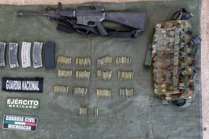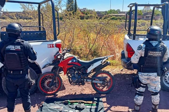 Agentes de la Guardia Civil localizaron abandonada un arma larga, cuatro cargadores, 110 cartuchos útiles y una motocicleta, durante un patrullaje en la comunidad de Loma del Guayabo, en el municipio de Churumuco.