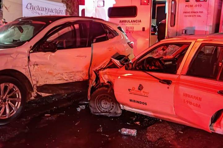 NOTICIAS 10/03/2023Aparatoso choque en la Uruapan ? Paracho; hay 8 heridosUn total de 8 personas heridas, dos de ellas de gravedad, fue el saldo que dejo un choque entre un taxi de la lÃnea conocida como "Mirindos" y una camioneta particular, sobre la carretera Uruapan-Paracho.