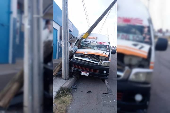 Contra un poste chocó una combi de la Ruta Naranja 3, esto en el municipio de Tarímbaro. Según fuentes allegadas al tema, el vehículo aparentemente se había quedado sin frenos.