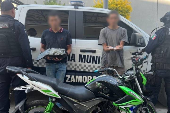 Dentro de las acciones en operativas y preventivas emprendidas por agentes de la Dirección de Seguridad Pública Municipal de Zamora, los uniformados detuvieron a dos hombres que viajaban a bordo de una motocicleta en posesión de varios envoltorios con droga.