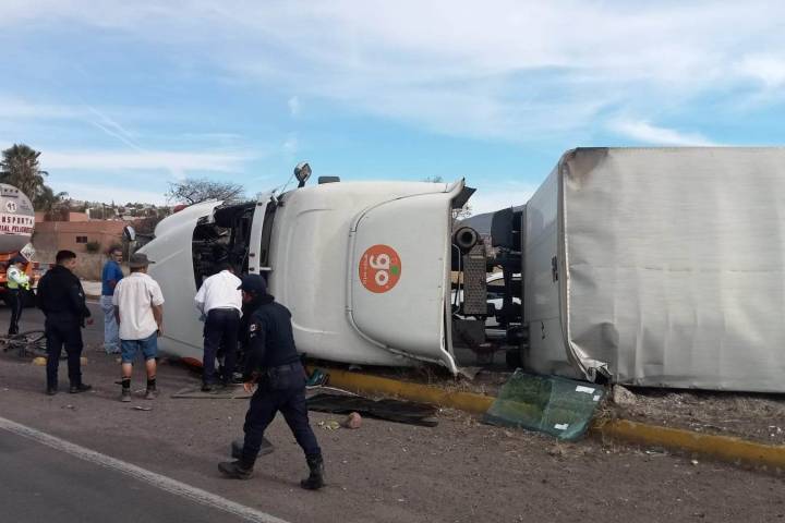 Al llegar al kilómetro señalado los paramédicos localizaron un tracto camión KW, color blanco, volcado.