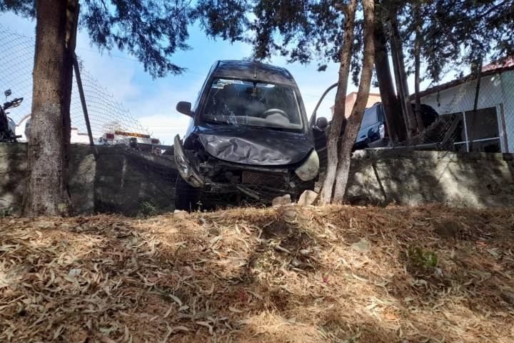 De acuerdo con los primeros datos obtenidos por este medio, el accidente se trató de un vehículo Dodge I10 color gris se salió del camino y se fue contra una malla ciclónica, quedando en una pendiente.